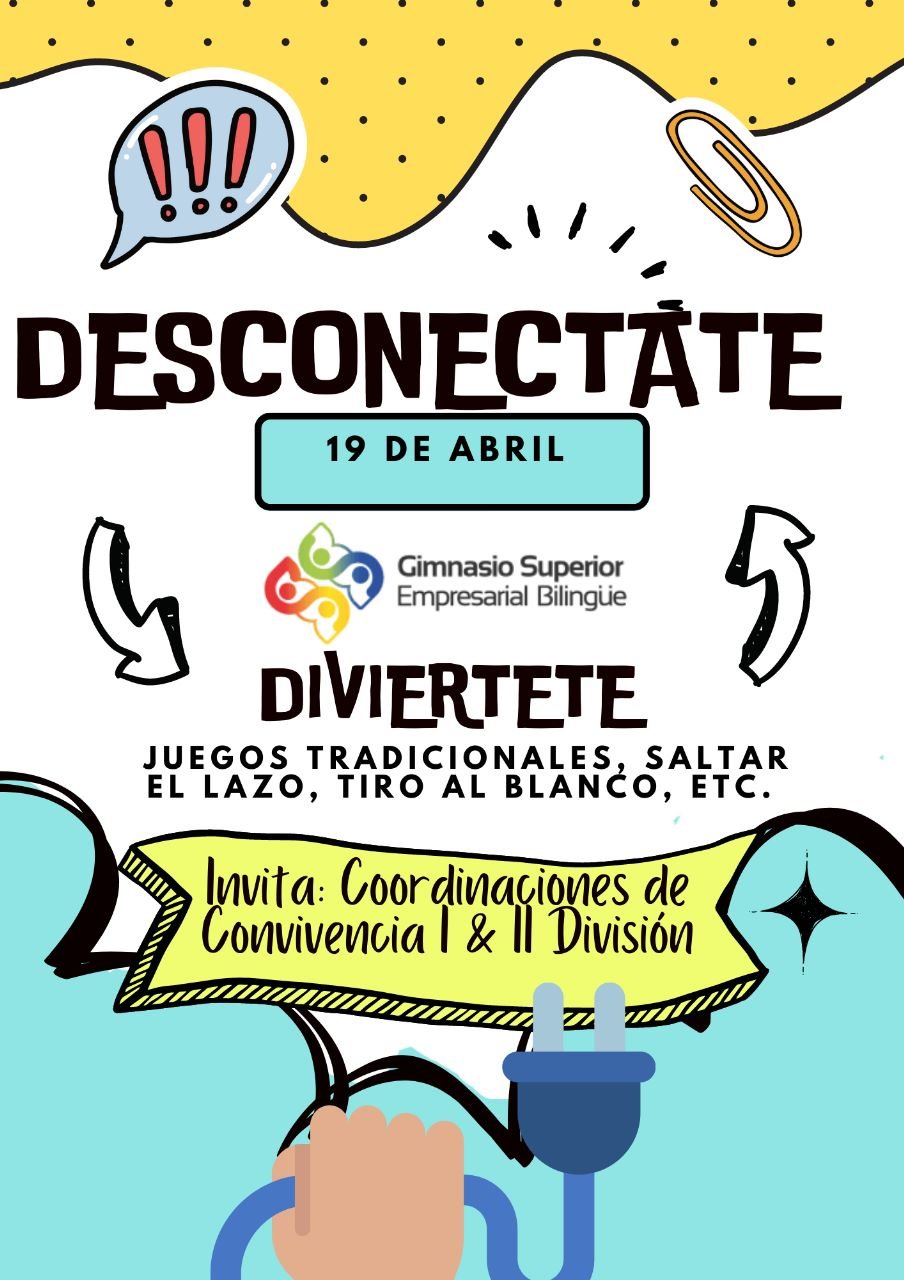 Únete y participa en la jornada de mañana 19 de abril “Desconéctate” que organiza la coordinación de convivencia para disfrutar con juegos tradicionales y compartir alegremente con los compañeros.