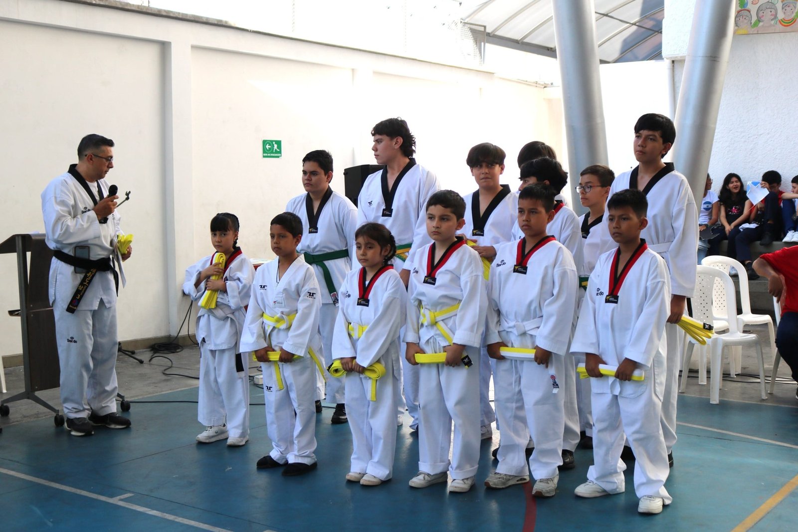 🥋 Y como si esto fuera poco, nuestros estudiantes de la lúdica de taekwondo han alcanzado un nuevo nivel de logro, ¡y se les hizo el cambio de cinturón! Un tributo a su esfuerzo y determinación.