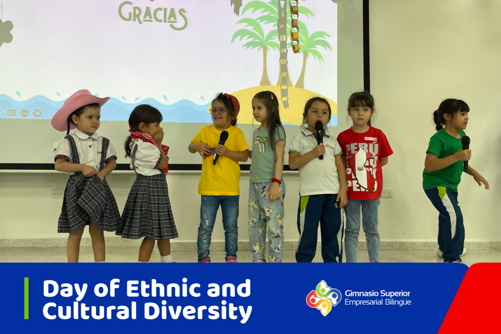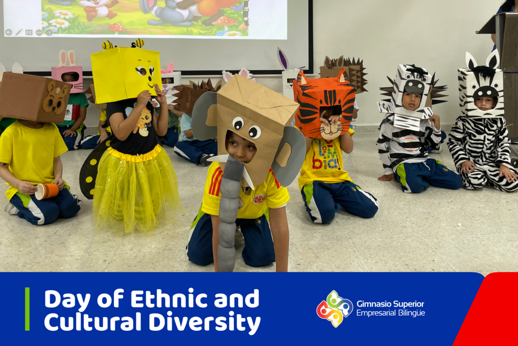 Nuestra Izada de Bandera en Gym Garden fue una fiesta para celebrar la diversidad étnica y cultural, resaltando la importancia del respeto por las tradiciones y culturas de toda América Latina. Los pequeños nos deleitaron con coplas, cuentos y mucha creatividad, destacando los valores de convivencia y multiculturalidad.