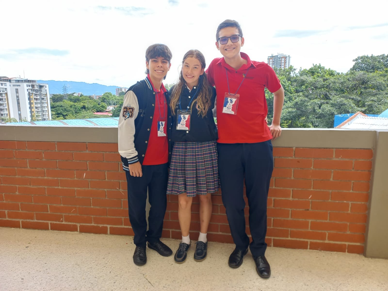 Los estudiantes Santiago Almeida, Verónica Rodríguez y Carlos Cárdenas se encuentran participando del intercolegiado de debates en la institución Fundación colegio UIS