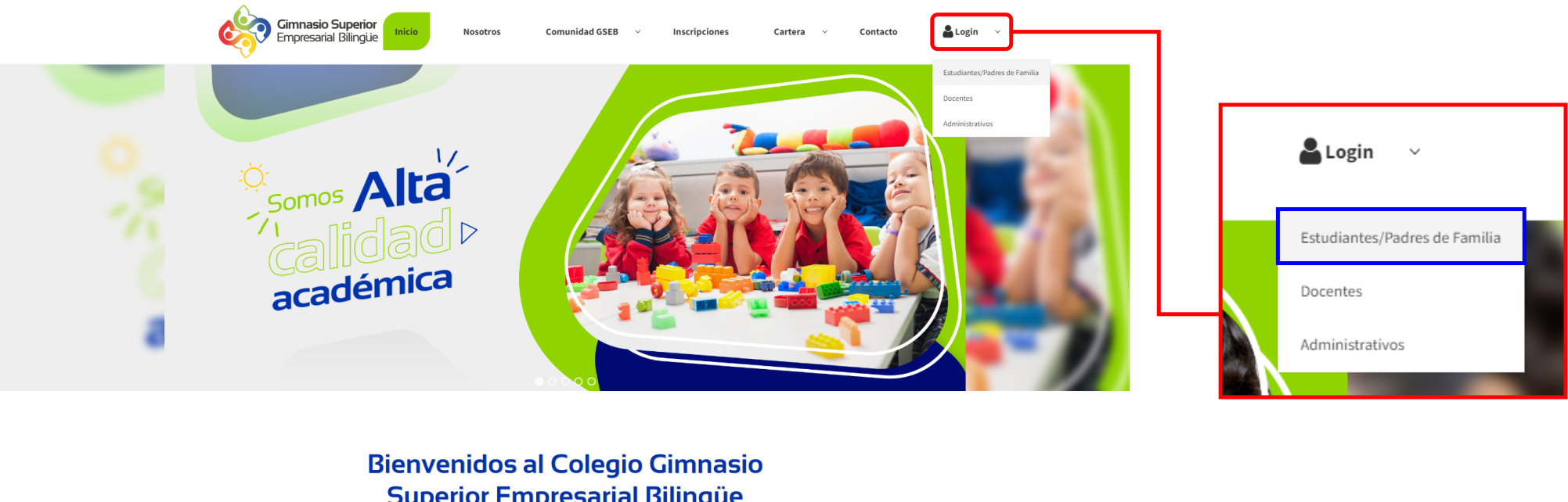 2. posteriormente, dirigirse a la sección “Login>Estudiantes/Padres de Familia”.