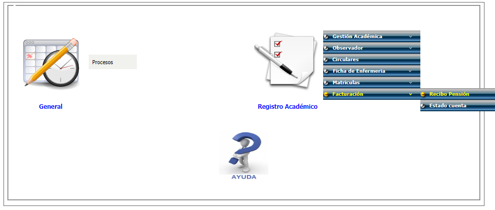 1. Una vez dentro de la plataforma, busque una sección llamada “Facturación>Recibo Pensión”.
