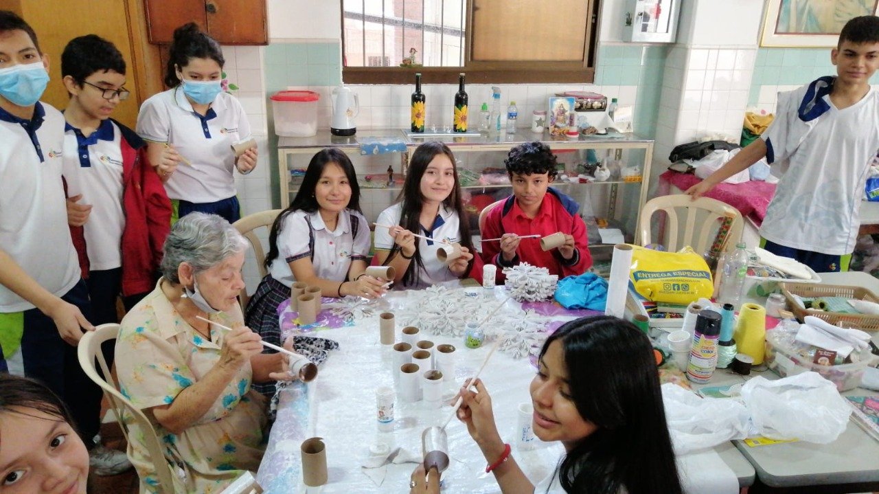 Así mismo los estudiantes pudieron compartir la experiencias con los abuelitos y afianzar el valor de la solidaridad.