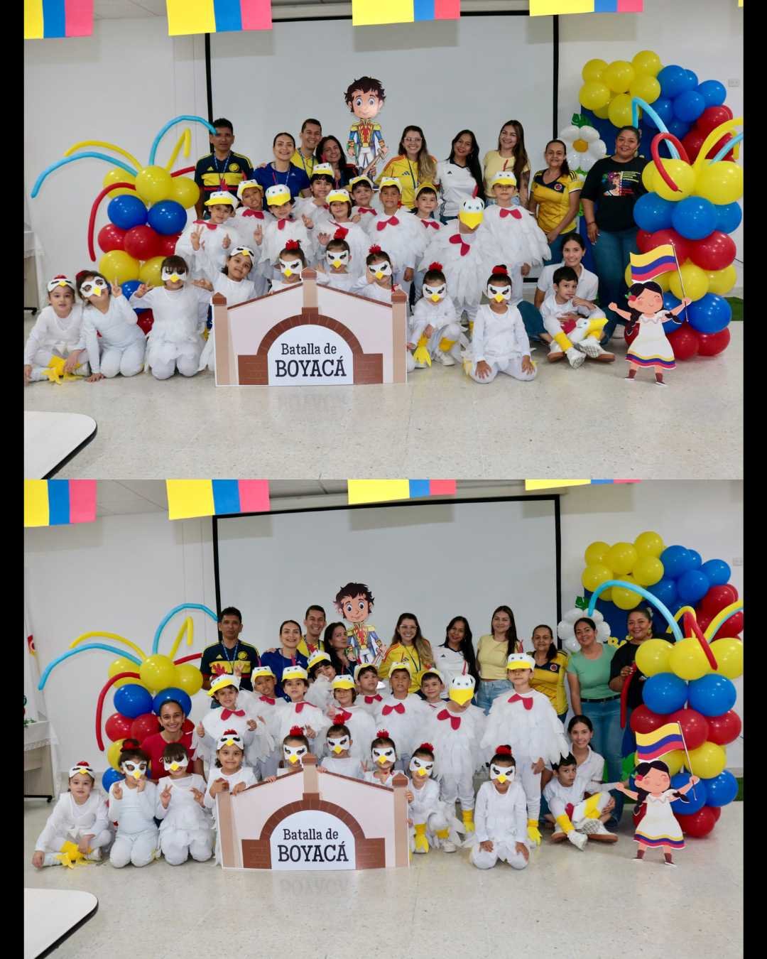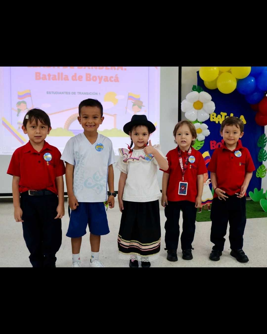 Hoy, los niños de Preescolar conmemoraron la Batalla de Boyacá con una hermosa presentación. Compartieron coplas alusivas a esta fecha histórica y disfrutaron de un alegre baile al ritmo de la canción colombiana “La gallina, la gallina saraviada”, interpretado por los estudiantes de Transición Uno. Además, se reconoció a los estudiantes destacados en Matemáticas, quienes tuvieron el honor de izar la bandera como símbolo de su esfuerzo y compromiso académico.