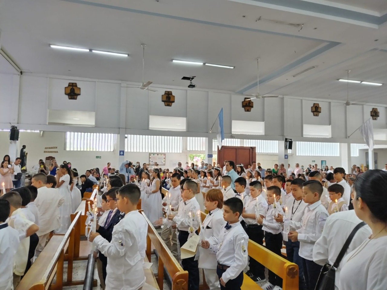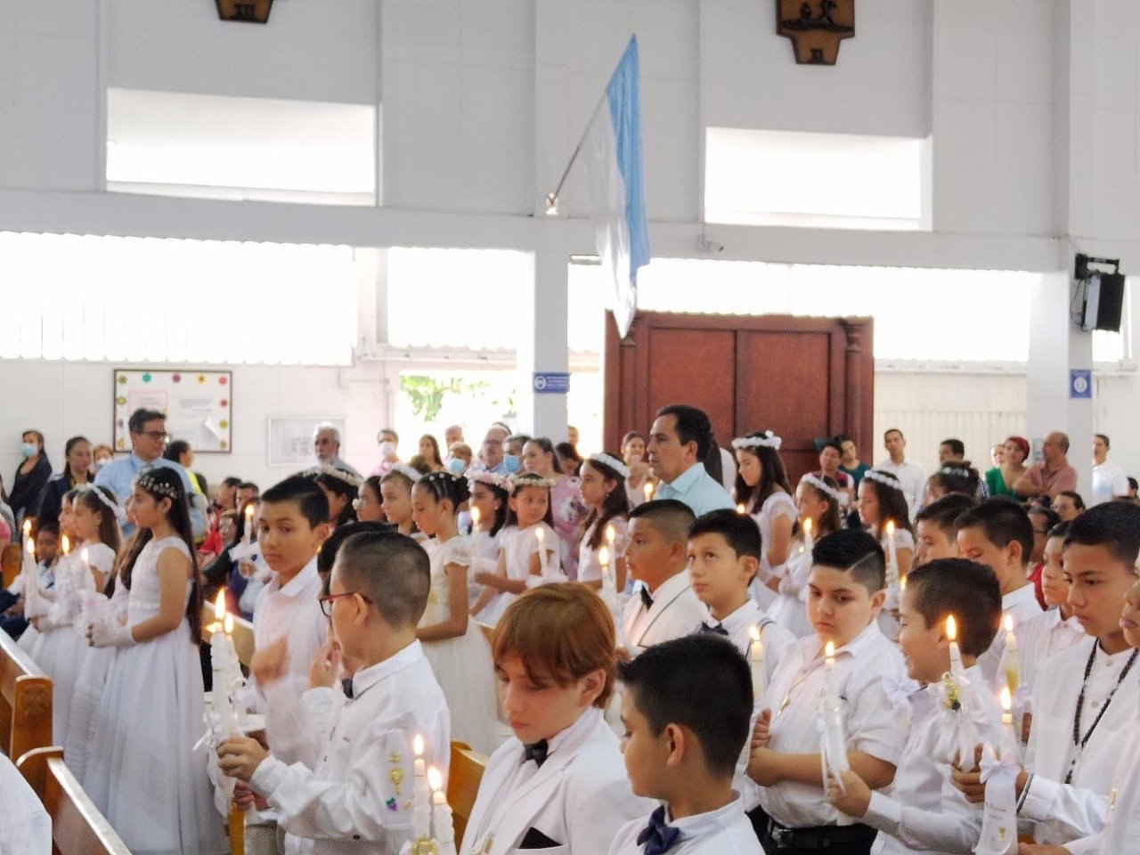 El pasado 8 de octubre se llevaron a cabo las primeras comuniones del Gimnasio Superior Empresarial Bilingüe en donde recibieron el sacramento un total de 60 estudiantes que asistieron a su catequesis de preparación durante el año. La ceremonia se llevó a cabo en la Iglesia Nuestra Señora de Las Victorias.