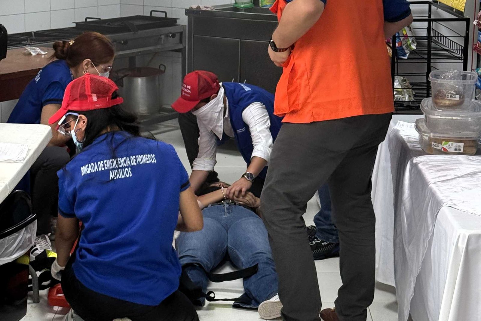 Una explosión simulada con posterior incendio en el área de cafetería.
