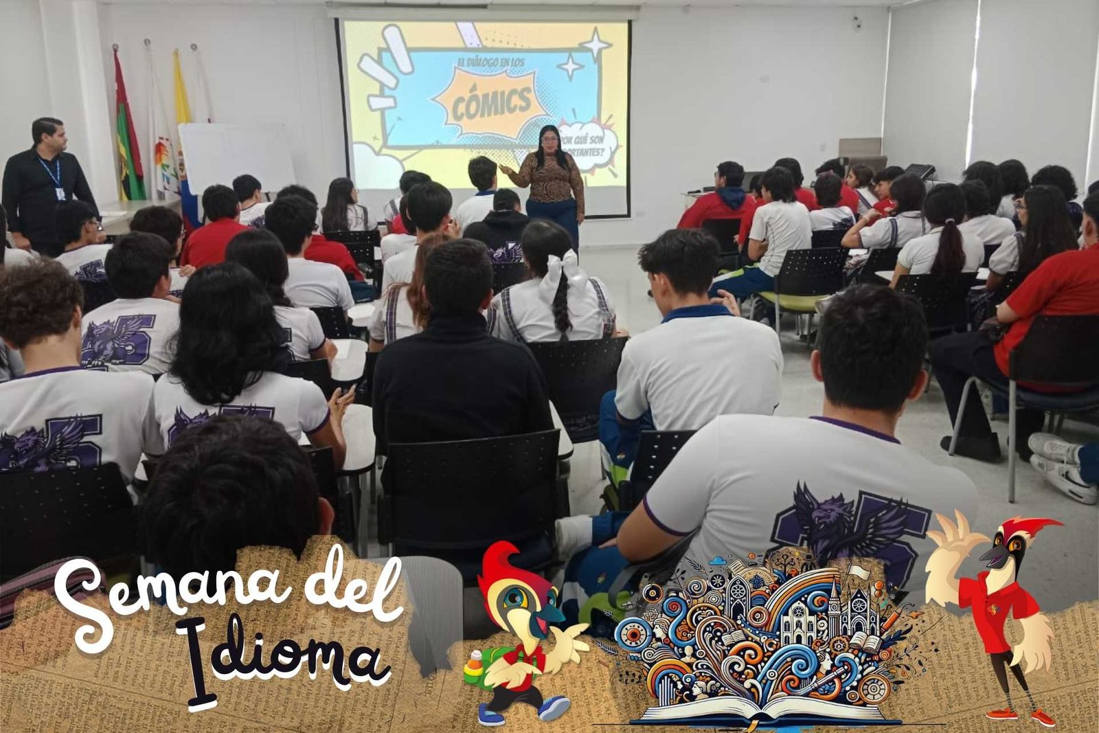 #SemanadelIdiomaGSEB En el segundo día de la Semana del Idioma, el arte y la palabra se unieron en una experiencia única. Nuestros estudiantes de 9°, 10° y 11° participaron en un increíble taller de cómics, donde dieron rienda suelta a su imaginación y talento artístico.