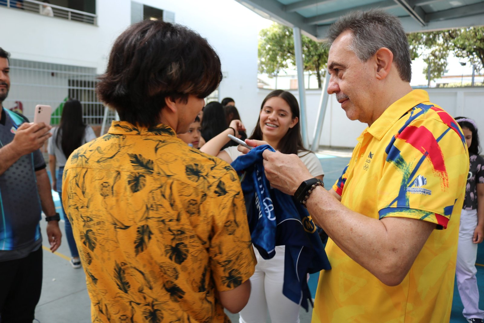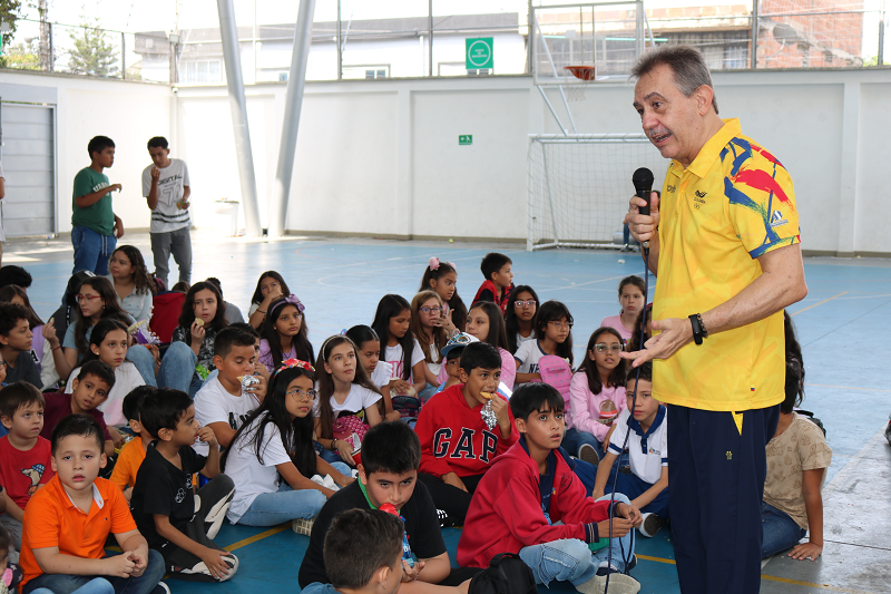 El pasado viernes 12 de mayo, recibimos la visita del profesor Antonio Rizola, entrenador de la selección Nacional Femenina de Voleibol 🇨🇴🏐, quien compartió con los estudiantes y deportistas unas palabras de aliento para que sigan por el camino del deporte y de nuestro proyecto de transversalización de aprovechamiento del tiempo libre, también se tomaron fotos y se firmaron autógrafos generando espacios de calidad para nuestros estudiantes.